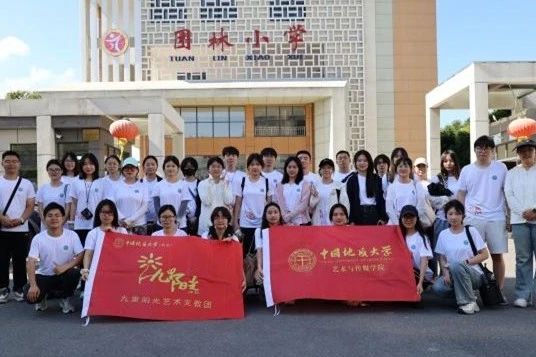 九里阳光艺术支教团在学院党委书记冷再心、党委副书记边建华、专职辅导员曾戈晖以及姜盛为的带领下,于 2025 年 7 月 2 日踏上征程,前往湖北省荆门市掇刀区团林小学和团林中学,开展为期 10 天的暑期艺术支教活动。