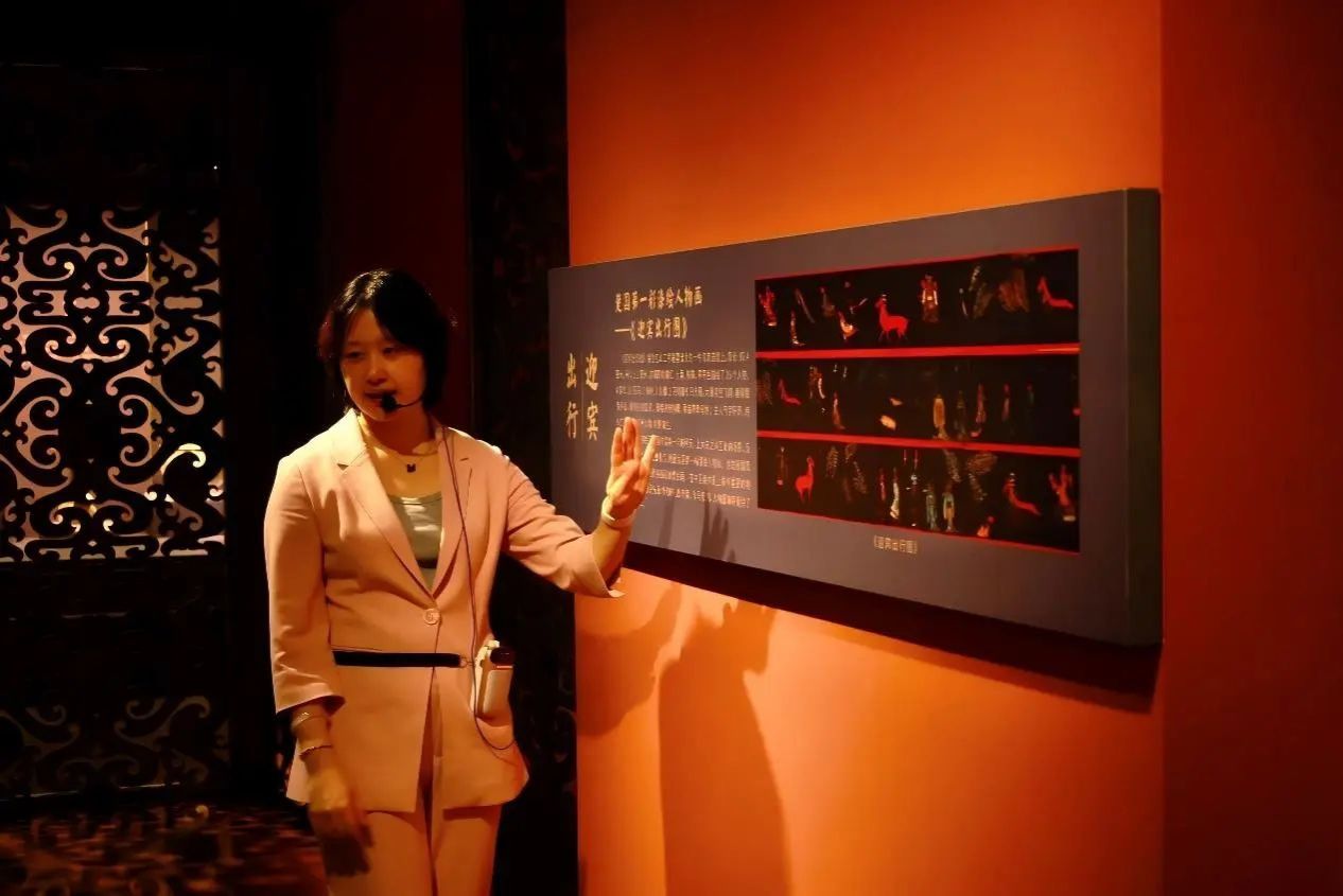 新馆运用全息投影、交互装置等科技手段,让文物“活”起来。在在郭店楚简展厅,全息投影技术将《老子》《太一生水》等典籍以动态光影呈现,配合楚地古乐,营造出“穿越千年”学术氛围。