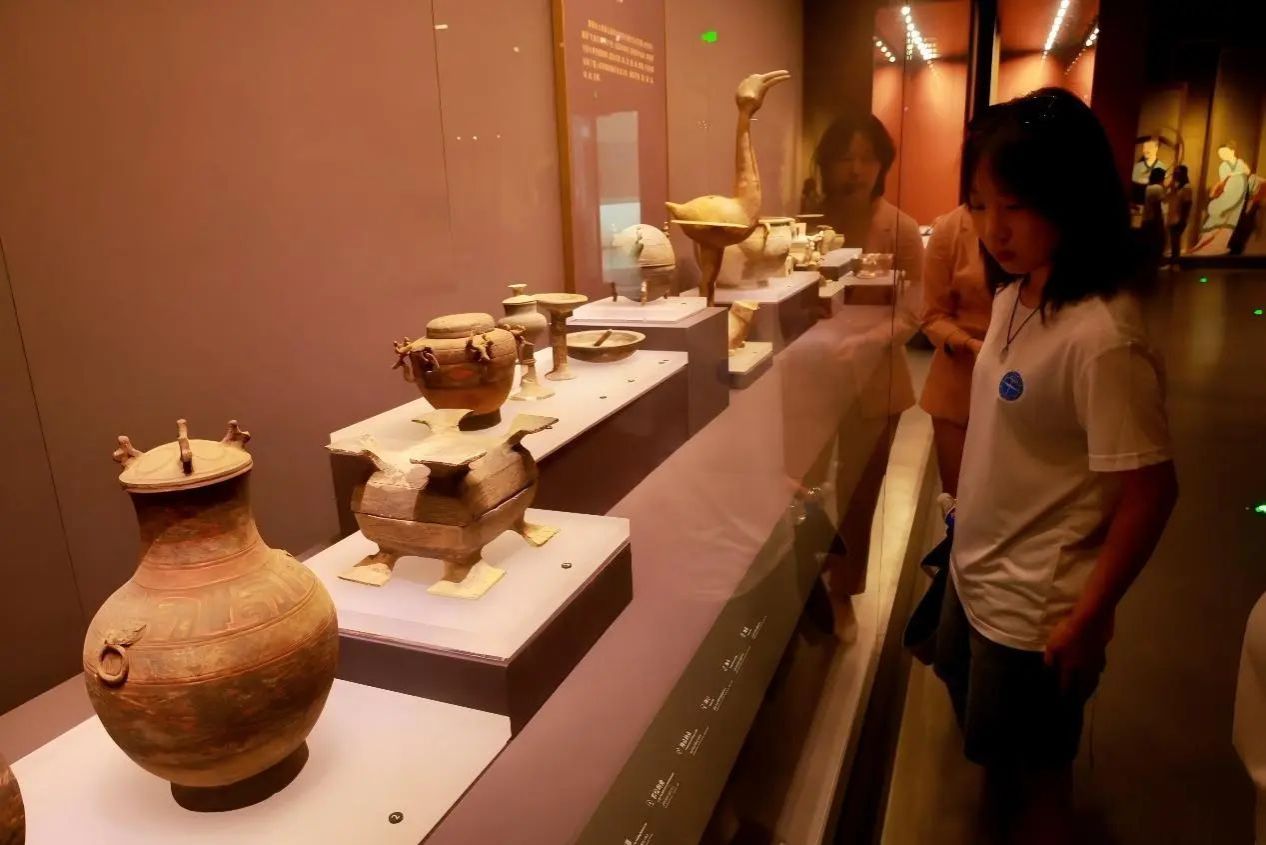 踏入荆门市博物馆漆器展厅,仿佛置身千年梦境。虎座凤架鼓造型张扬,红黑交织的漆纹如凝固的火焰与夜空;几何纹样工整细腻。虎座凤鸟典雅大气,做工精良。这些漆器不仅是器物,更是楚地先民浪漫想象与精湛技艺的结晶,承载着历史温度,令人心生敬畏与珍惜。这次参观,让我深刻感受到荆门这座城市深厚的历史底蕴,同时也让我们九里阳光艺术支教团的各位同学了解到历史的厚重和文化的传承,让我们受益匪浅。