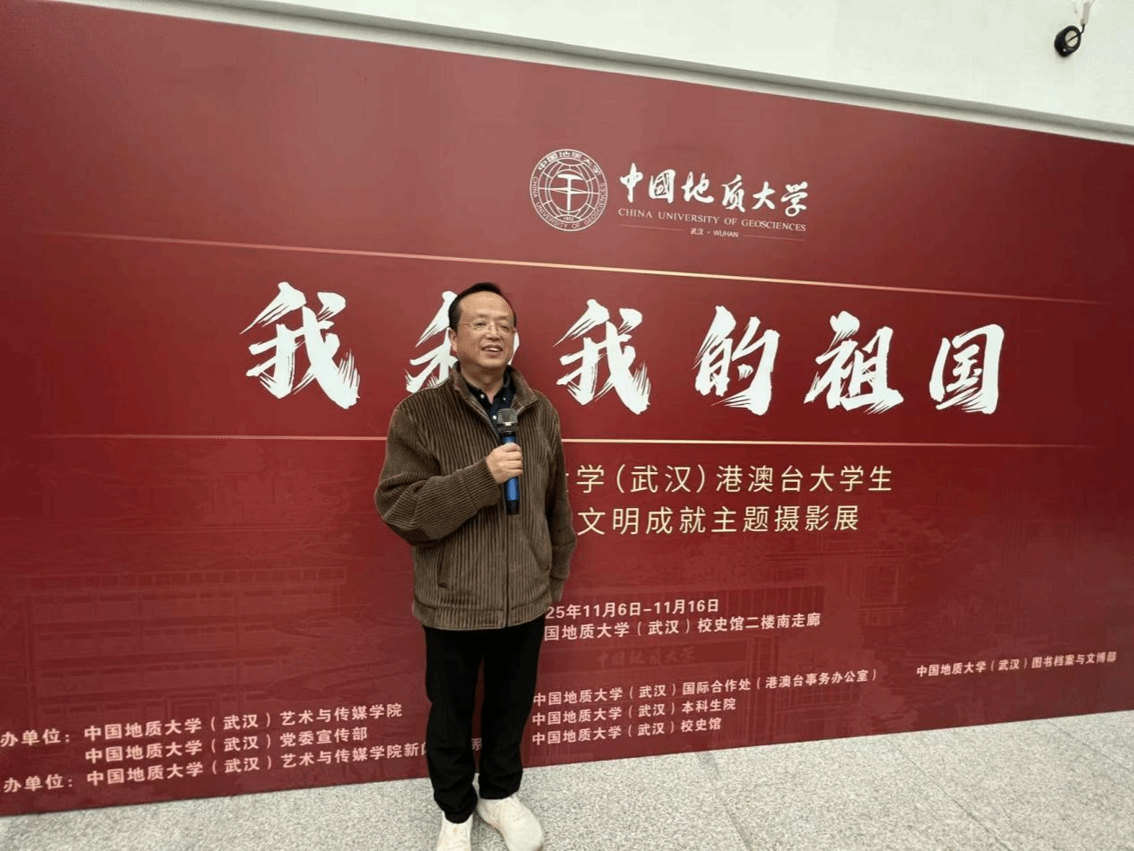 与相关职能部门的共同努力。他特别提到,学校长期重视实践教学,同学们在秭归实习、野外考察中锤炼了意志,也深化了对祖国生态文明建设的理解。此次展出的作品,正是这些实践成果的生动体现,展现了“我和我的祖国”之间深厚的情感联结。