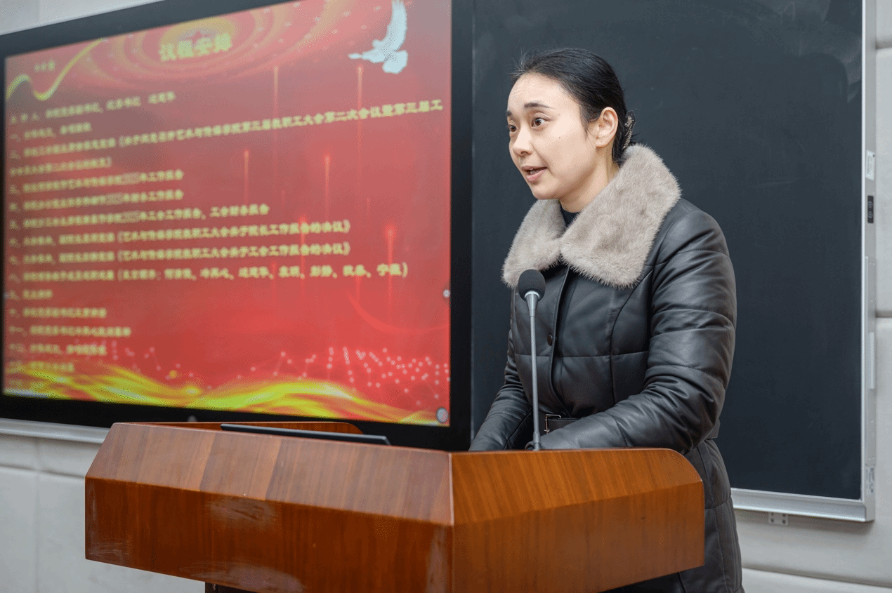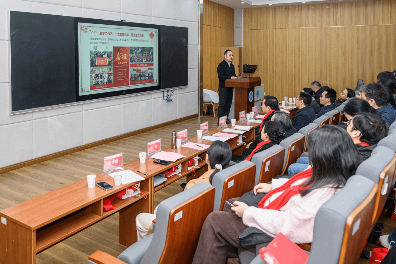 学院分工会主席程璜鑫作2025年工会工作报告。他从民主管理、职工成长、生活关怀、文体活动、服务师生等方面介绍了年度工会工作情况。他表示,学院工会将继续情系职工、真诚服务,不断创新服务模式,持续拓展服务新场景,推动服务精准对接,切实提升教职工的获得感、幸福感和安全感。