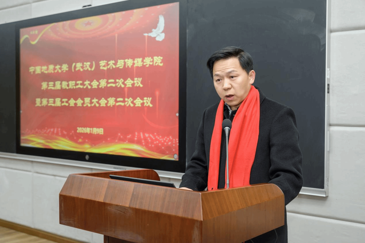 院长何清俊作学院2025年度工作报告。他从党建思政、学科建设、人才培养、科学研究与社会服务、美育建设等多个维度,详尽报告了学院2025年的工作进展。他指出,2026年学院将以申报博士点为引领,以提高人才培养质量为核心,以深化特色交叉学科发展为路径,全力开创学院事业发展新局面。