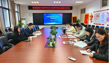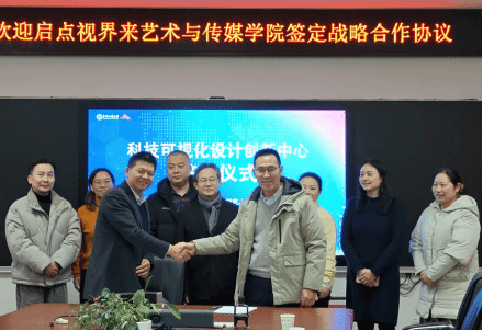 ,双方就联合共建"科技可视化设计创新中心"签署合作协议。参加签约仪式的学院领导班子成员包括党委书记冷再心、院长何清俊、学院党委副书记边建华,以及副院长袁玥、彭静、狄丞、宁薇。