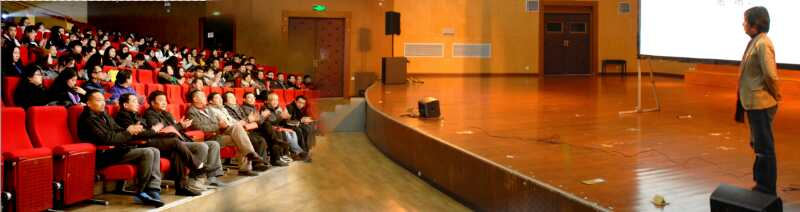 讲座进行,吴学夫教授从自己在山东威海发现的一家名为 “创意”的海鲜店谈起,他谈到,全民创意时代已经来临。创意时代的创意思维,吴学夫教授认为,应从五点把握。一是创意与文化的纽带;二是“概念”的开掘;三是视觉形式的策略;四是打破常规思维;五是创意背后的哲学和社会文化。