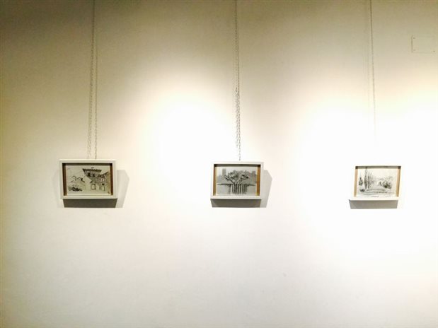 参观完黄老师的画作后,小组开始布置:取画框,裁画纸,摆放画作以及装置。不一会儿,十多个同学来来往往的匆忙身影,以及大家忙里偷闲的笑谈声,充满画廊的每一个角落。数小时后,高雅的画廊内已满是地大学子的作品,小组成员们的心中满满的成就感。
