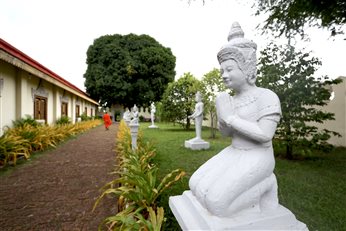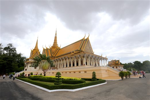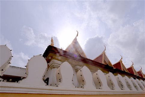 8月19日下午,实习小组由老师带队前往独立纪念碑、大皇宫参观考察。由于有两河交汇,金边的城市风景如画,又因随王国而兴,金边的城市布局很自然地以皇宫为中心,皇宫就成为金边最引人注目的地方。