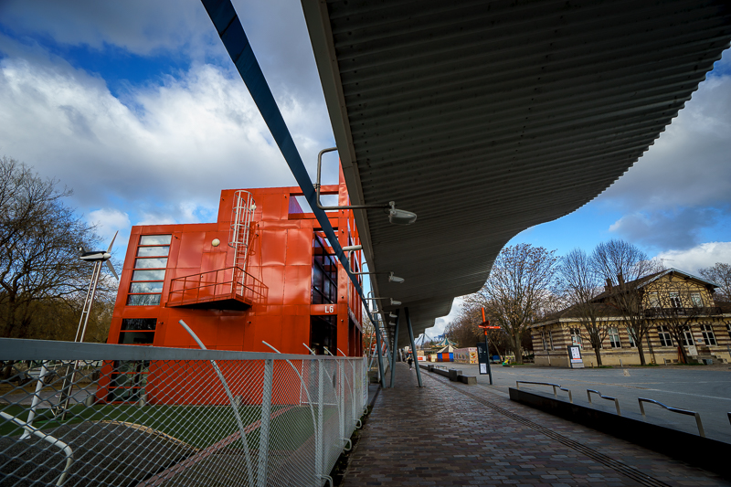 上午10点30分,访学团到达拉维莱特公园,并在程璜鑫老师的带领下进入公园内部进行参观。在正式进入公园之前,程璜鑫老师向访学团成员介绍道:“拉维莱特公园是解构主义的代表之作。解构主义,简单来说就是采用解析的方法,将传统结构分解成一系列要素并重新组合,组合的原则却不再遵循传统的均衡与稳定,而是更加强调因地制宜和随机性。拉维莱特公园所在地其最开始是一个旧的工业用地,1867年改建成为牲畜屠宰场,1973年屠宰场关闭后,时任法国总统德斯坦提议兴建一座大型的科技、文化设施。1982年,密特朗总统提议举办了拉维莱特公园的国际设计竞赛。就是在这次竞赛中,具有法国和瑞士双重国籍的建筑师伯纳德·屈米(Bernard Tschumi) 最终胜出成为公园的总体设计师。此公园还被列为纪念法国大革命二百周年而在巴黎兴建的九大“总统工程”之一。”