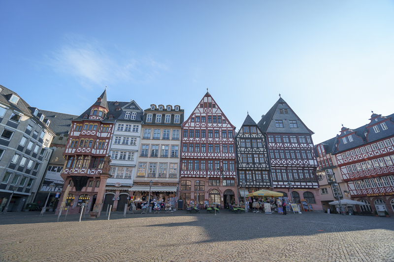 参观完毕,访学团离开法兰克福大教堂,穿过老城区,步行至罗马广场。广场对面的大公府紧挨着最高法院,而正对大公府的地方则立着神女的塑像。神女手持天平,象征着法律的公正与公平。站在广场之上,马林老师向访学团介绍道:“罗马广场修建于欧洲中世纪时期,是德国最重要的城市广场之一,其是按照贝壳的结构建造而成的,十分特别。此外,由于法兰克福的第一任大公是由罗马教廷封禅的,因而罗马广场的‘罗马’指的并不是罗马帝国,而是指神圣的罗马。”