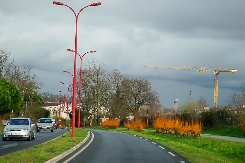 中午14点46分,经过短暂的休整,访学团继续向波尔多进发。一路穿过波尔多平原,踏上法国最为平直的公路。此时天已转晴,阴云渐散,堆叠的云彩间隐隐透出蓝色的天空,不时洒落的阳光照在车窗上,映暖了访学团成员们的脸。