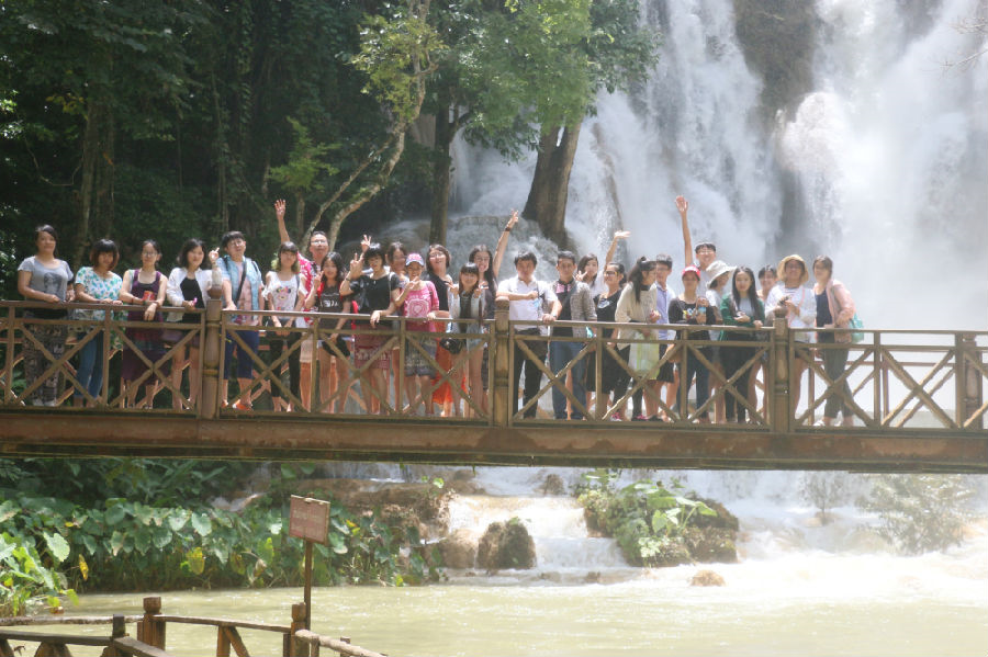 10号的行程也十分丰富,依旧是在苏发努冯大学建筑学院的邀请下,老挝实习小组师生参观了琅勃拉邦自然景观关西瀑布。光西瀑布景色瑰丽,沿山路上行,时而涉水而行,沿途交流。午间,苏发努冯大学建筑学院师生与琅勃拉邦写生小组在瀑布前共进老挝传统午餐,回途中,苏发努冯大学建筑学院老师向实习组师生介绍了当地传统的傣族民居。在这个民族信仰浓厚的国家,当地传统的傣族民居有着自己独特的风格和色彩,宁静而安详。