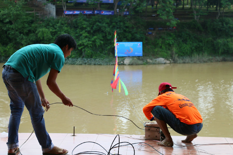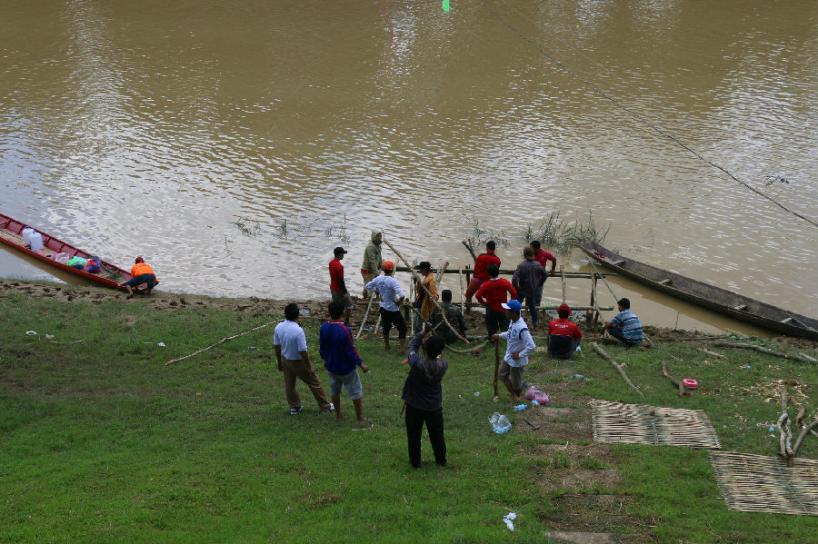 9月11日是老挝划船节第一天。当地居民正在紧张准备之中,船队也在积极预演中,岸边有热心民众观看。期间,家家户户打扫卫生,包水果粽子明日投掷水中,寺院向佛像洒水。