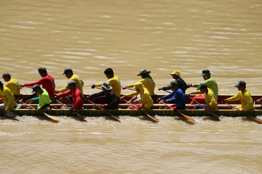 老挝划船节于今年九月十一号至十三号期间举行,在河里组织划独木舟比赛,晚上,在湄公河里可以看到一种神秘的蛇浮出水面。老挝写生实习小组的同学们十分期待12日盛大的赛事。