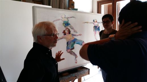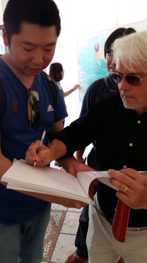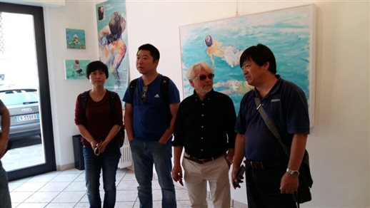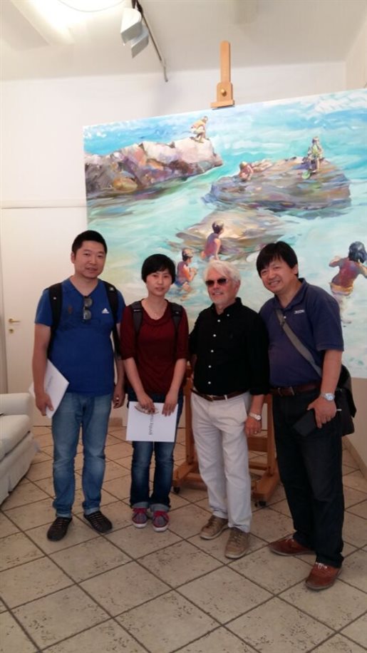 当地时间6月15日,世界文化遗产古城曼托瓦(mantova),当代艺术系教师与居住于此的意大利艺术家克劳迪奥(claudio)见面。克劳迪奥热情的引导大家参观他的画廊和工作室,与教师们一起分享他的创作理念,交流讨论当代艺术现状与走向。临别,他向教师们赠送了画册,并表达了与污污漫 师生交流合作的强烈愿望。