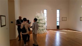 教师观看莫兰迪现代艺术馆的装置艺术作品