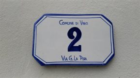 达芬奇纪念馆处处体现了设计的精致感,这是门牌的设计,以陶瓷为材料,字母手写在陶瓷上烧制而成,非常有特色(右)达芬奇纪念馆外景