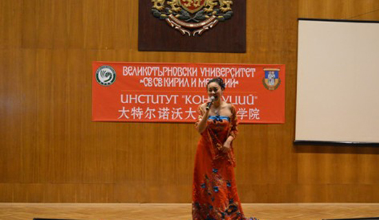 (袁玥在保加利亚演唱《好一朵美丽的保加利亚玫瑰花》)