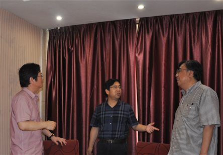 聘任仪式前,蔡大生教授与赵冰院长对学院的发展,特别是音乐系的发展进行了探讨。蔡大生教授表示,音乐教育越来越普遍,我们面临着严峻的形式,不进则退。如果没有一个明确的发展方向,是很难生存的。而人才引进也是一个非常重要的方面。
