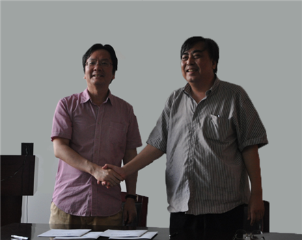 聘任仪式上,赵冰院长与蔡大生教授合影。(杜玥摄)