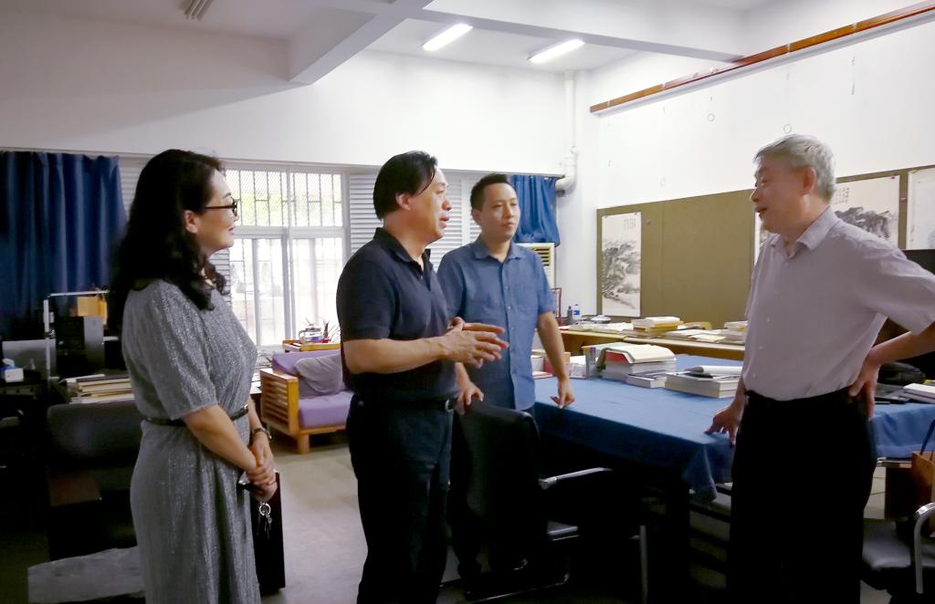 10日下午,傅安洲副校长来到艺媒学院,在艺术与传媒学院郭秀蓉书记与桂宇晖院长的陪同下来到学院各院系向老师们致以节日的问候,与各位老师进行亲切交谈,并详细了解工作情况。随后来到新闻传媒系责任教授张梅珍工作室及环境艺术系责任教授向东文工作室进行参观交流,并对他们为学院发展及学科建设付出的辛勤劳动表示感谢,最后傅安洲副校长与学院领导、教授合影留念。