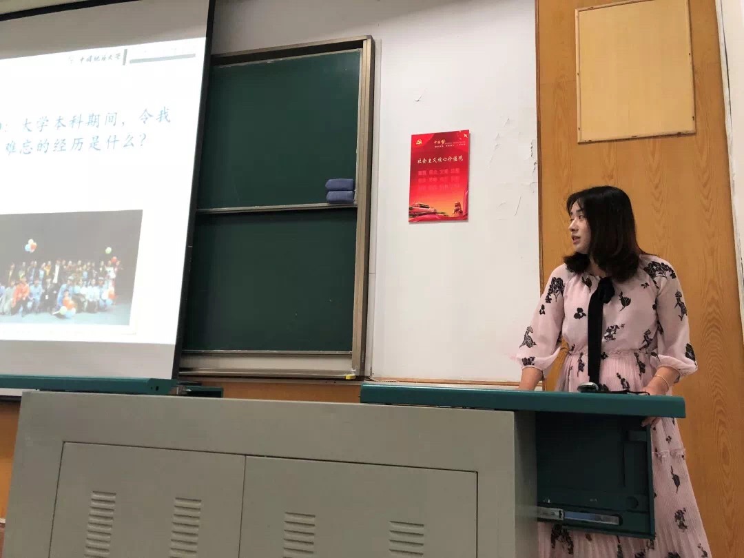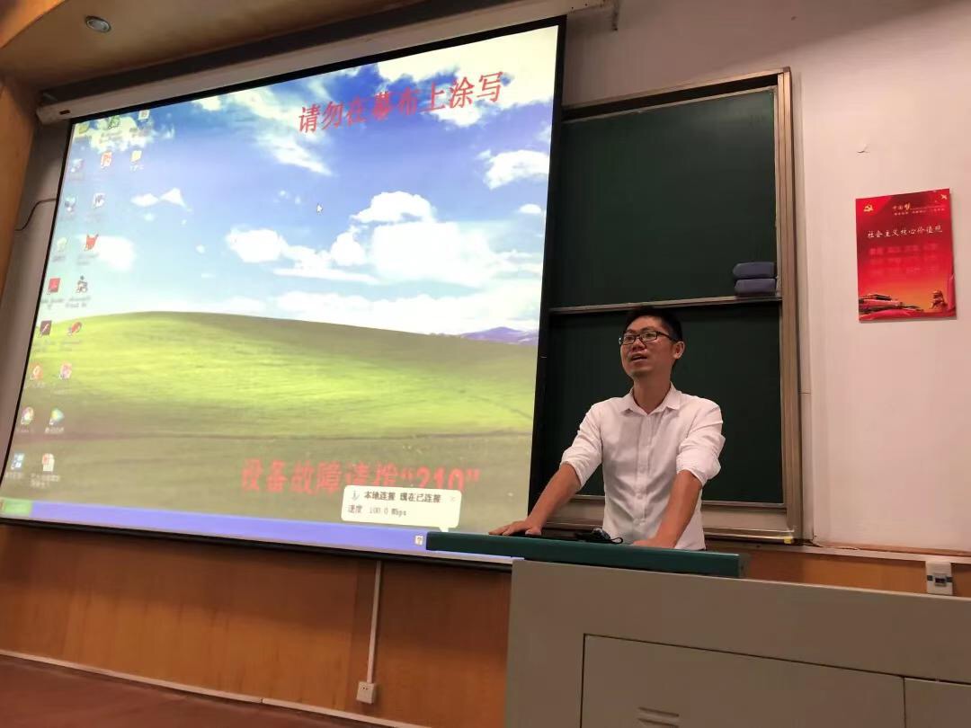 十分钟的休息时间过后,吴思伟老师向同学们介绍了学院的党建工作与党建办工作小组,号召新生们积极向党组织靠拢,不忘初心跟党走。随后郑老师为同学们详细地讲解了学校的奖励资助相关办法。