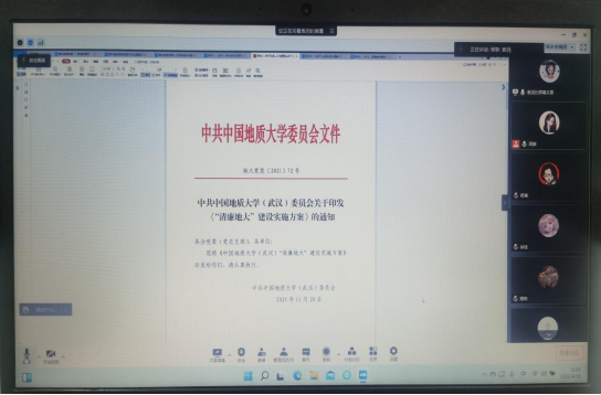 五个教工党支部分别开展了以学习《关于加强新时代廉洁文化建设的意见》、《“清廉地大”建设实施方案》、习近平总书记关于安全生产的重要论述和指示精神和学习贯彻习近平总书记给中国冰雪健儿重要回信精神四个文件为主题的主题党日活动。