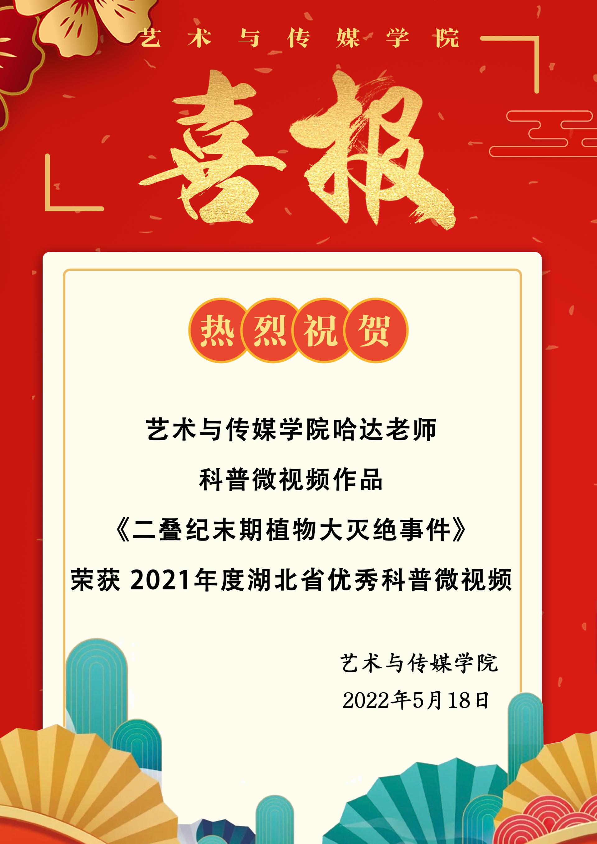 喜报!热烈祝贺污污漫 哈达老师作品获2021年度湖北省优秀科普微视频