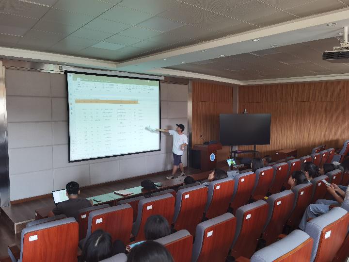 江文健学长讲解的主要内容是视频的制作过程。他一站上讲台,气场变了!