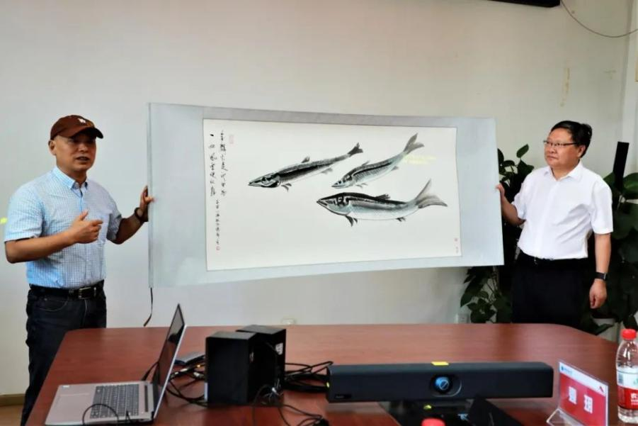 致辞,高度评价了欧阳德彪先生在艺术创作中取得的成就,表达了先生向学校捐赠画作的感谢。接着,由校党委常委、宣传部部长、校庆办主任储祖旺代表学校接受捐赠,副校长赖旭龙为其颁发捐赠证书。欧阳先生表示,画作中由鱼到龙的转变,寓意着学生通过在学校的学习能够蜕变成更加优秀的自己,表达了对莘莘学子的殷切期望。