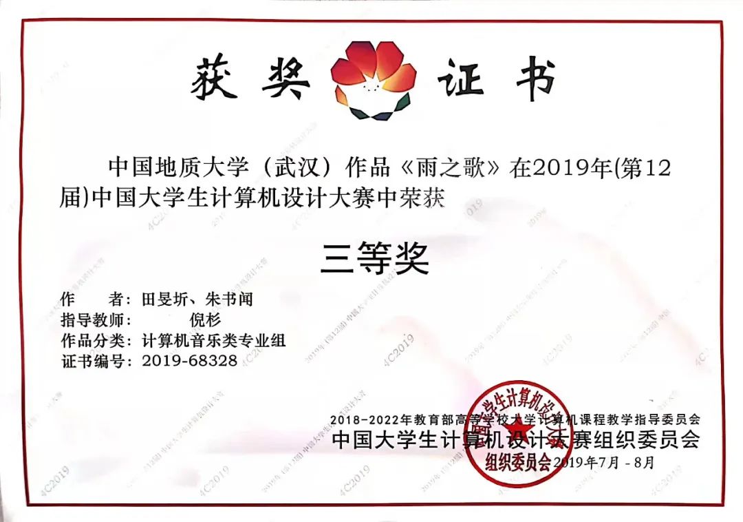 获得C音乐作品类三等奖