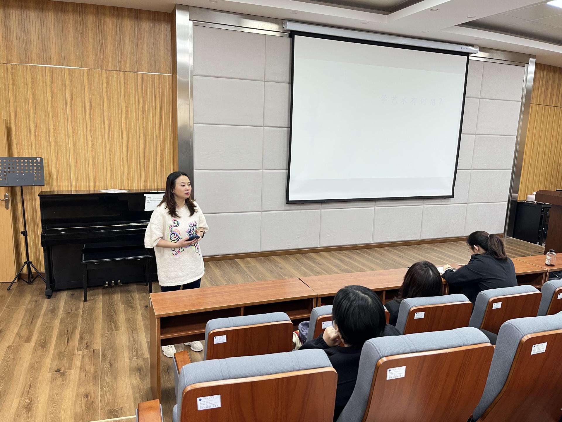 建设七十周年,更好的推进美育教育建设,培养高素质人才,应艺术与传学院周黎副教授邀请,武汉理工大学朱梅梵教授做客学校“七轶荣光,筑梦未来”学术讲座,做了题为《学艺术为什么》的主题讲座。讲座于2022年11月3日下午14:00在本学院1104学术报告厅举行,学院党委书记郭秀蓉同音乐系的教师与同学们一同聆听了讲座。