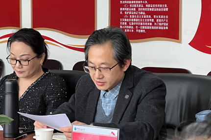 会议议程第一项由袁玥副院长介绍前来交流指导的湖北省教育厅的各位领导。吕凡,湖北省教育厅艺术教育委员会主任、湖北省高校戏剧组织联盟常务副主席、湖北省高校音乐教学指导委员会副主任,武汉大学生电影节历届总导演,第七届世界军人运动会开闭幕式导演组成员。韩蔚,湖北省教育厅艺术教育委员会副秘书长,华中科技大学艺术教育中心原主任、校大学生艺术团原团长。