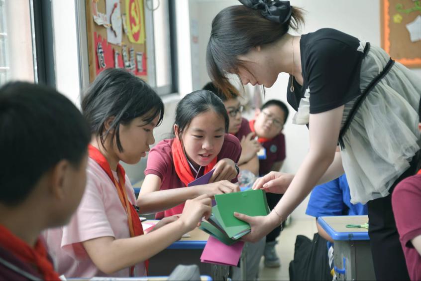 觅灮美育名师工作室的师生来到附属学校六年级一班的课堂,与44名即将毕业的小学生开展了一场精彩有趣的美育活动,在老师的讲授和指导下设计制作毕业立体贺卡。