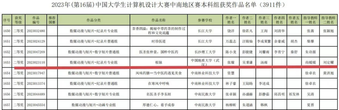 2023年5月29日,2023年(第16届)中国大学生计算机设计大赛中南赛区发布作品评审结果公告,污污漫