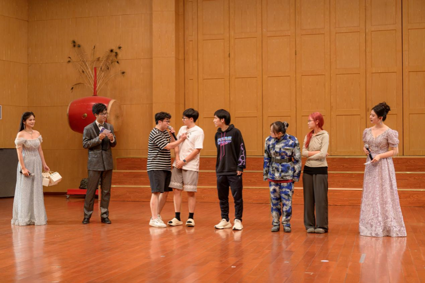在互动抽奖环节,抽奖时的紧张刺激与开奖后的激动兴奋点燃了整个会场。随后,李佳园、李怡萱同学带来了民乐串烧。古琴和古筝音色婉转、穿透力强,带给我们一个纯净的心灵世界。由石巍、王忆燃演奏《保卫黄河》慷慨激昂、气势磅礴。在最后,晚会以2024级新生辅导员及助理班主任合唱的《NEW BOY》结束。