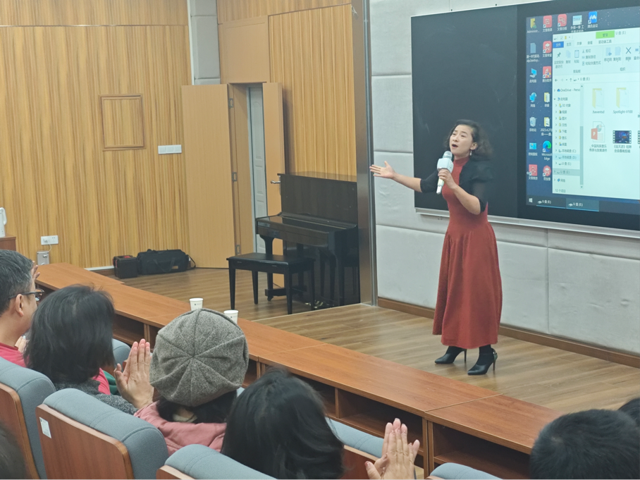 在这个充满艺术氛围的晚上,特邀嘉宾为大家演唱了解承强老师的音乐作品。许老师为我们深情演绎了《信天游》。她的声音高亢激昂,如同西北高原上的风,将我们带入了那片辽阔的土地。紧接着,姚老师以其柔和而富有感染力的嗓音,为我们带来了《一个真实的故事》。她的歌声如同潺潺流水,细腻而深情,用音乐讲述了一个关于让人感动至深的故事。