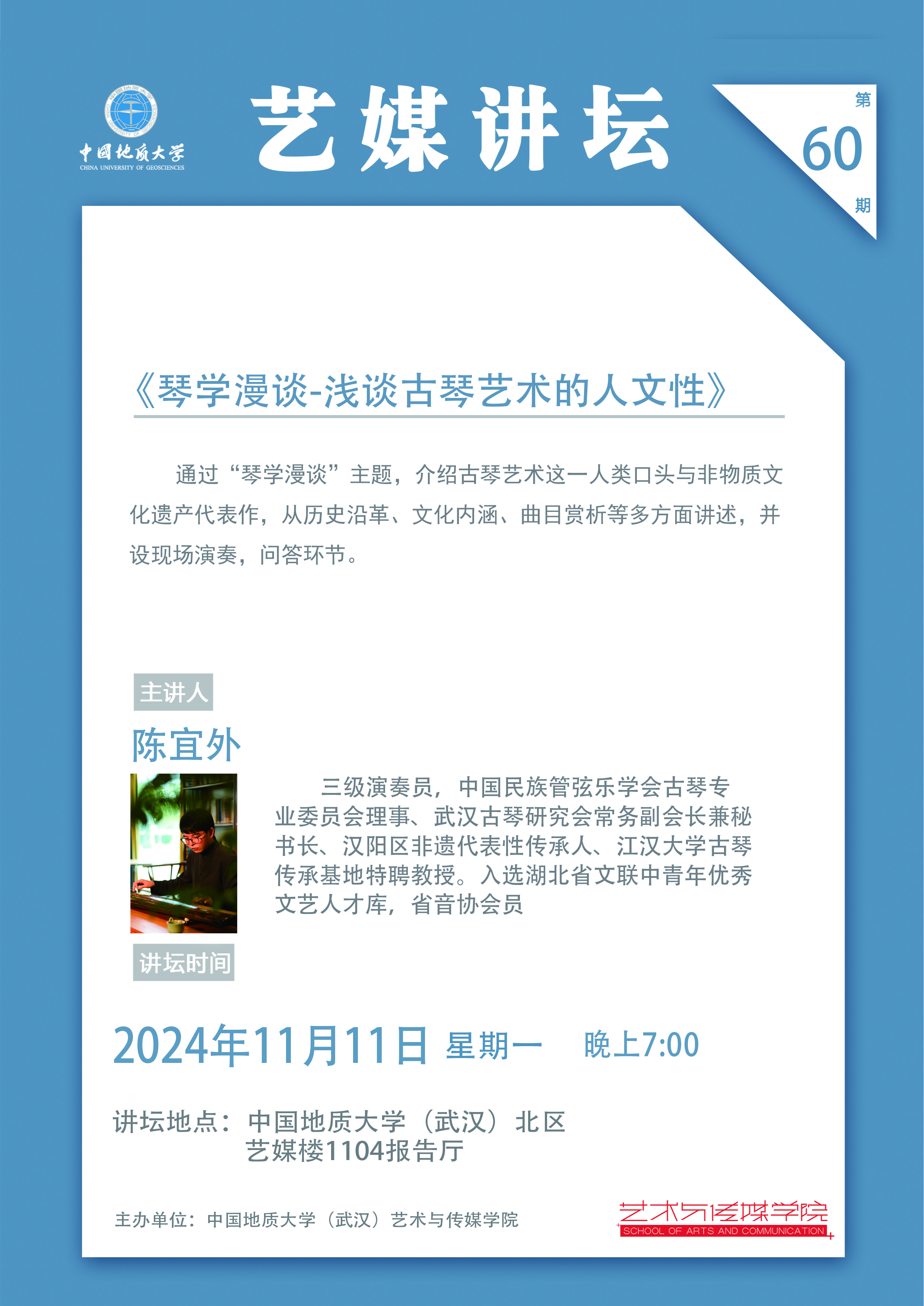 【2024年11月11日】学术讲座:武汉琴台太和琴社社长陈宜外专家讲座