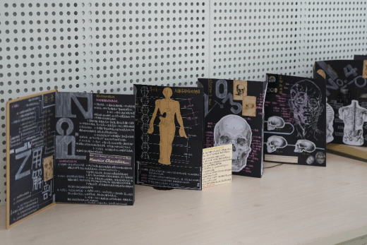2025年9月26日-9月30日,24级数字媒体专业169241及169242班《艺用解剖学》课程结课展在北区图书馆二楼顺利展出。《艺用解剖学》课程在黄瑛老师的指导下,以手绘为重要教学手段,引领学生深入理解人体形态的奥秘。课程聚焦艺用人体解剖实践与结课四格漫画创作两大核心板块,要求学生将所学知识整合并装订成手工书,以此链接基础课程与艺术设计专业,多角度呈现了艺用解剖学的丰富内涵。