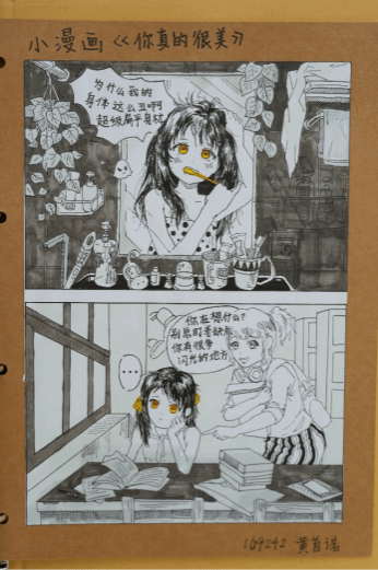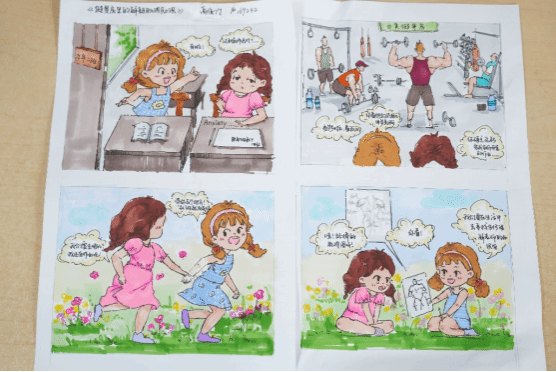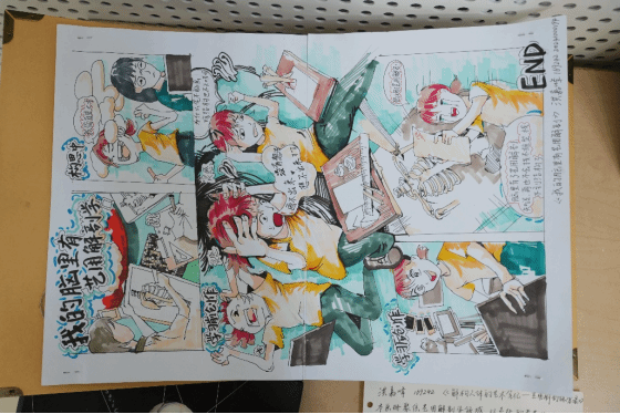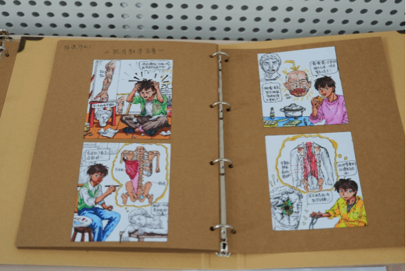 结课四格漫画创作板块,同学们运用手绘技巧,将解剖学知识与漫画艺术完美融合。以简洁而生动的画面、幽默而富有深意的叙事,展现对人体、生命和艺术的独特见解。有的漫画通过夸张的手法突出人体结构的特点,有的则以温馨的故事传达对健康和生命的珍视。这些手绘漫画作品充满了人文关怀和艺术感染力,彰显了同学们在艺术创作上的创新思维和个性表达。