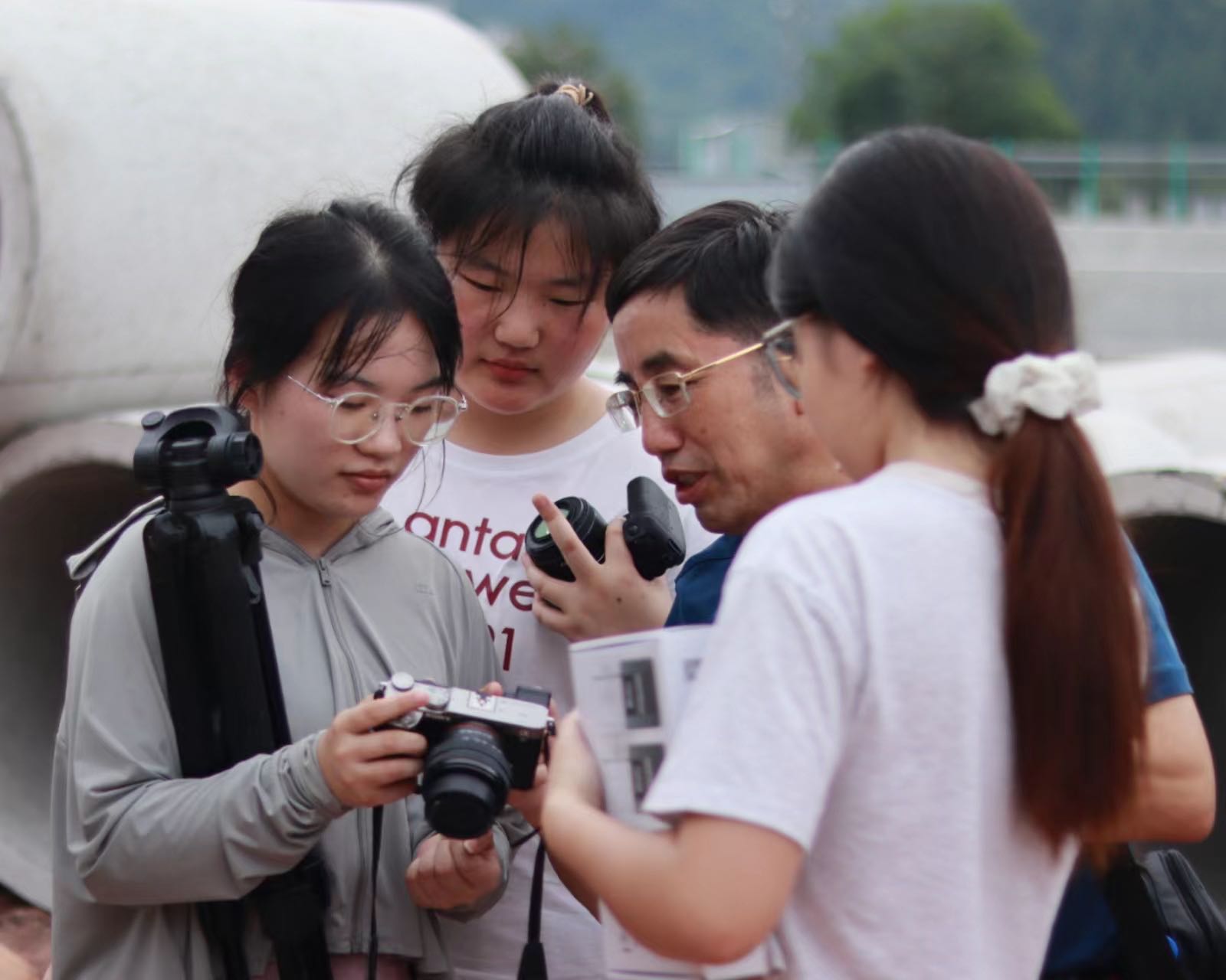 图为同学们在巴东野外综合试验场采访拍摄。