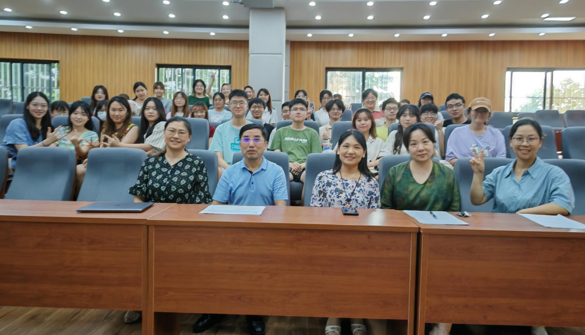 图为7月3日,广播电视学专业大二学生教学实习第一次选题报告会结束后,师生合影
