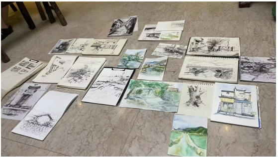 同学们在理坑进行踩点考察后,开始用画笔描绘出理坑和基地周边的美貌。在绘画完后集合起来,老师对我们的画作进行讲解,使我们对这次写生有了更清晰的认识和了解。