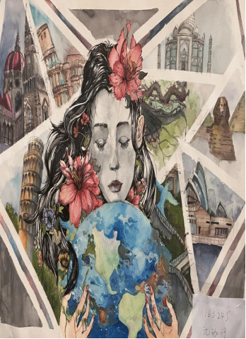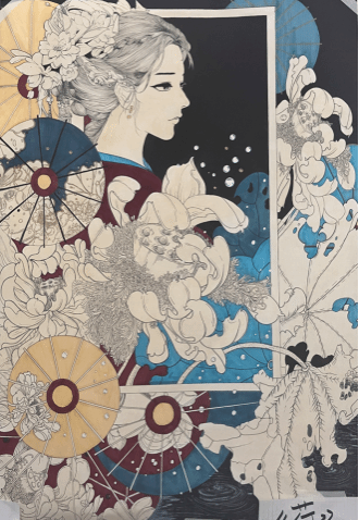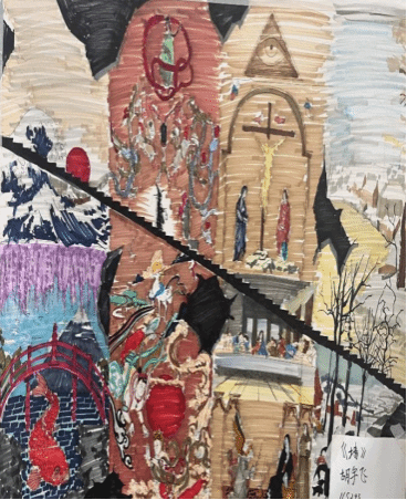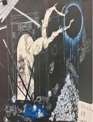 此次课程展览展出数十幅手绘作品,涵盖抽象、线条、奇幻等多元风格。同学们发挥创造力,运用丰富线条、多变色彩与多样材质,将传统美学和现代设计理念相融合,碰撞现实与奇幻想象,作品满溢青春活力,吸引众多师生观赏。