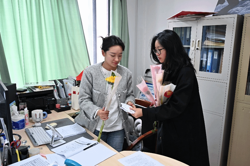 此次鲜花慰问活动为节日增添了温馨仪式感与满满幸福感。女教师和同学们共同与鲜花合影留念,分享节日喜悦,一张张笑脸定格成春日里最美的风景。