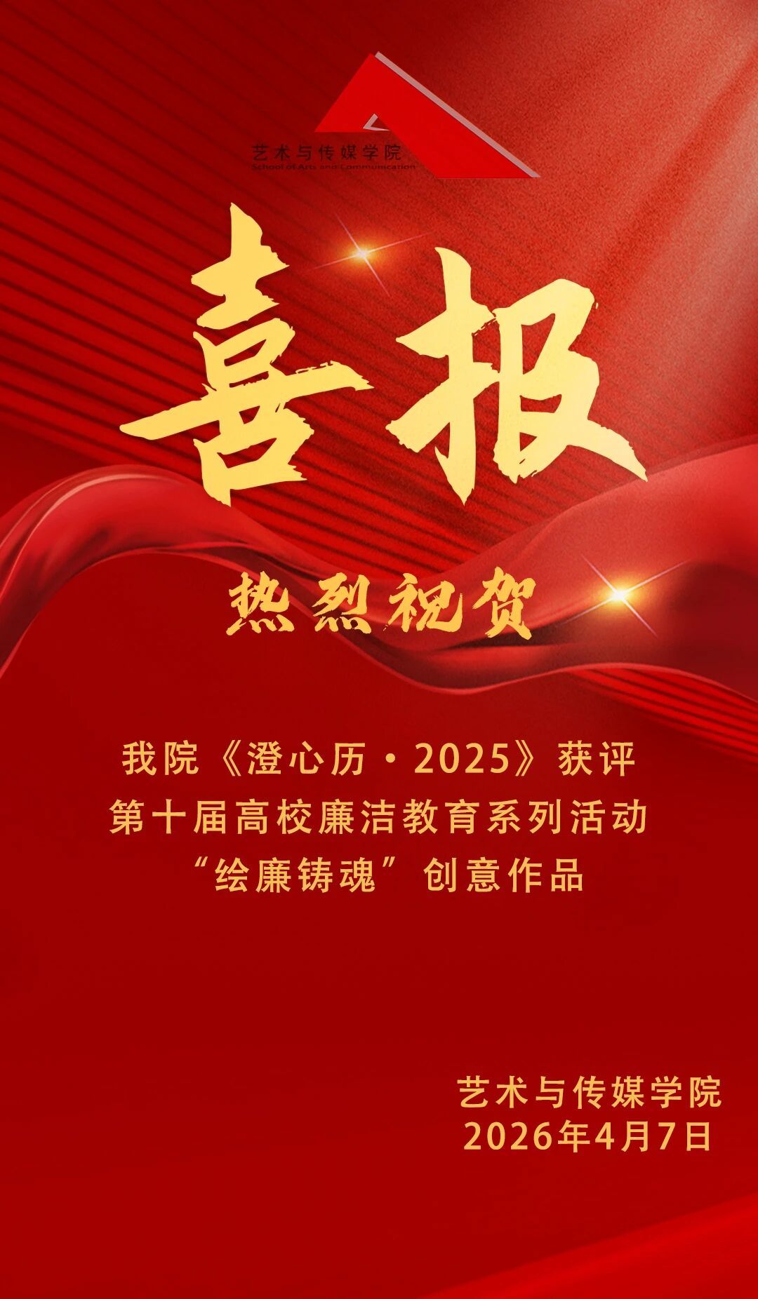 喜报 | 热烈祝贺污污漫 学生作品《澄心历·2025》获评教育部第十届高校廉洁教育系列活动”绘廉铸魂“创意作品