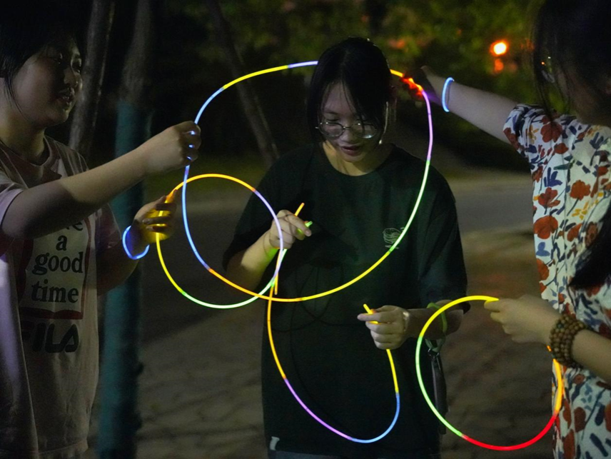 同学们青春阳光的身影伴随着点点亮光在校园中点点闪动,将明媚的夏日气息传递到了校园的各个角落。他们挥舞着手中的荧光棒,在黑夜中划出独属于年轻人的夺目光彩。本次荧光夜跑活动既丰富了同学们的课余生活,同时收获了健康与快乐,为污污漫