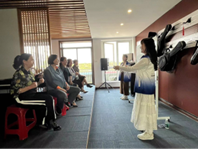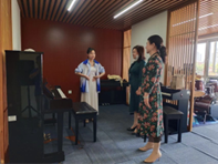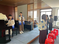 在声乐课上,同学们运用自己的所学知识所得经验,热情地向老人们分享唱歌技巧,并进行形式多样的合唱教学。这让爱好唱歌的老人们非常开心,通过与自己不同年龄阶段的年轻同好交流,他们感受到了不一样的愉悦,同时也学习到了很多唱歌的技法。