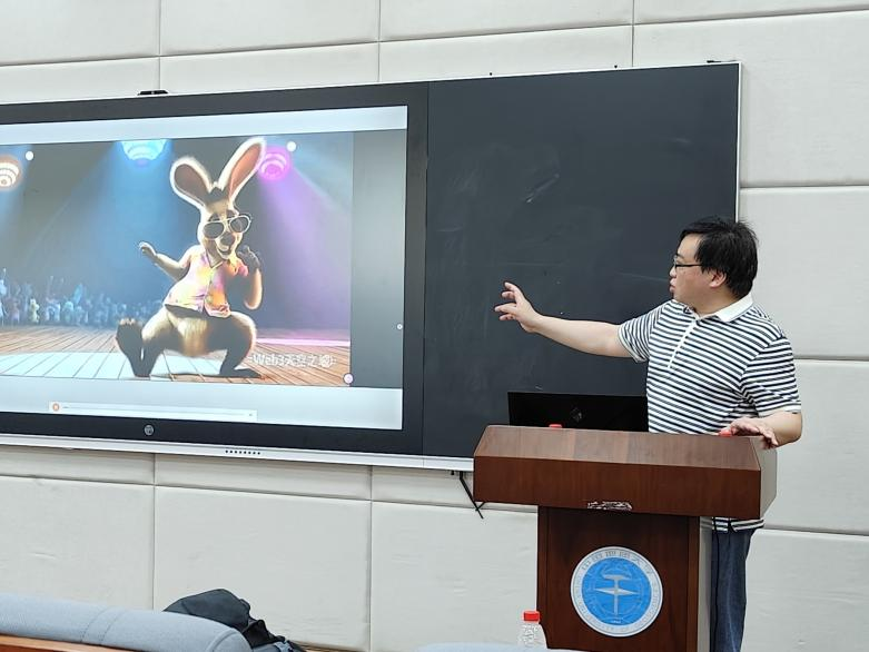 首先,周子钦老师从人工智能的基本概念入手,结合相关作品,通过通俗易懂的语言为同学们解释了人工智能如何模拟人类智能并进行艺术创作的过程,以及人工智能在图片生成、语音识别、自然语言处理等领域的广泛应用。