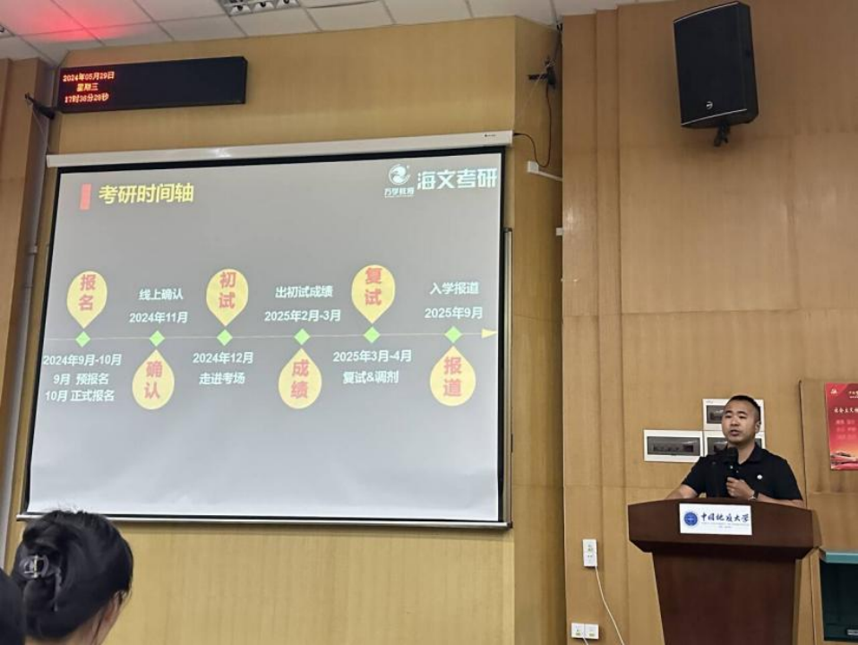 大会伊始,杨剑峰老师作为百度教育特聘高级考研名师,讲解了考研时间线,分析了考研宏观形势,讲解了择校注意事项,并为同学们具体分析了本院的录取情况,提醒同学们好好规划时间,利用现有资源积极备考。