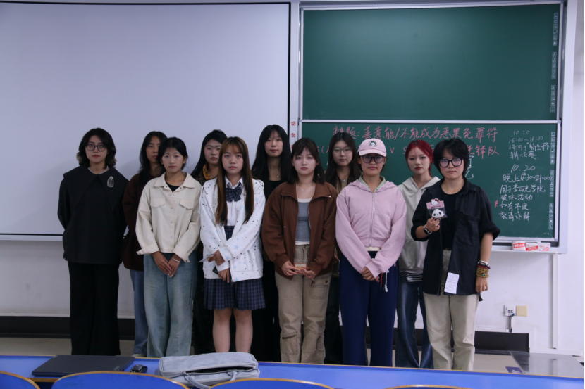 第三场辩论赛在北综楼306教室举行,由陈雅雯、欧一凡、张心童担任评委。来自16s245班的“从容应队”作为正方,来自16s243、163241班的“少年先锋队”作为反方,就“善意能/不能成为恶果的免罪符”展开激烈讨论。