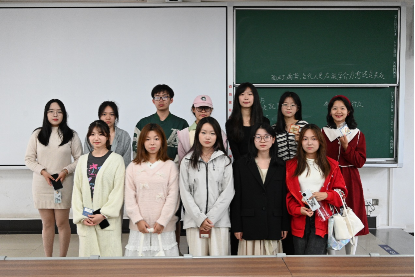 第二场比赛在北综楼305教室举行,由唐翼舟、欧一凡、陈雅雯担任评委。两支参赛队伍分别是正方“跟着党走就队”和反方“有的打就行队”。他们就“面对痛苦,当代人更应该学会疗愈还是共处”展开激烈辩论。